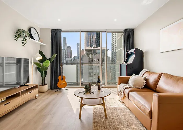 公寓的住客步行约19分钟即可抵达街区拱廊. 这套公寓坐落于墨尔本中央商业区. Stylish Cbd Apartment Urban Escape & Epic Views!距离Om Vegetarian 及Rej's Cafe & Kebabs不到200米. 公寓靠近维多利亚艺术中心.